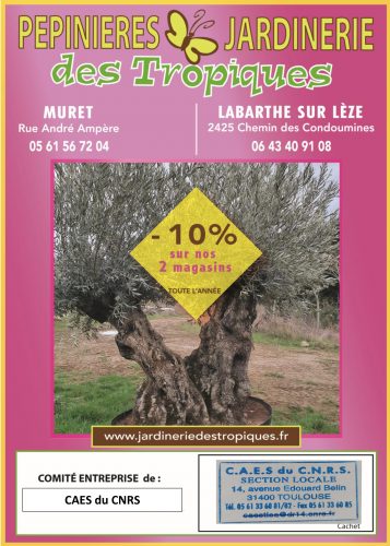 La jardinerie des Tropiques à Labarthe sur Lèze et à Muret vous propose 10% sur tous vos achats sur présentation de ce flyer jardinerie des tropiques